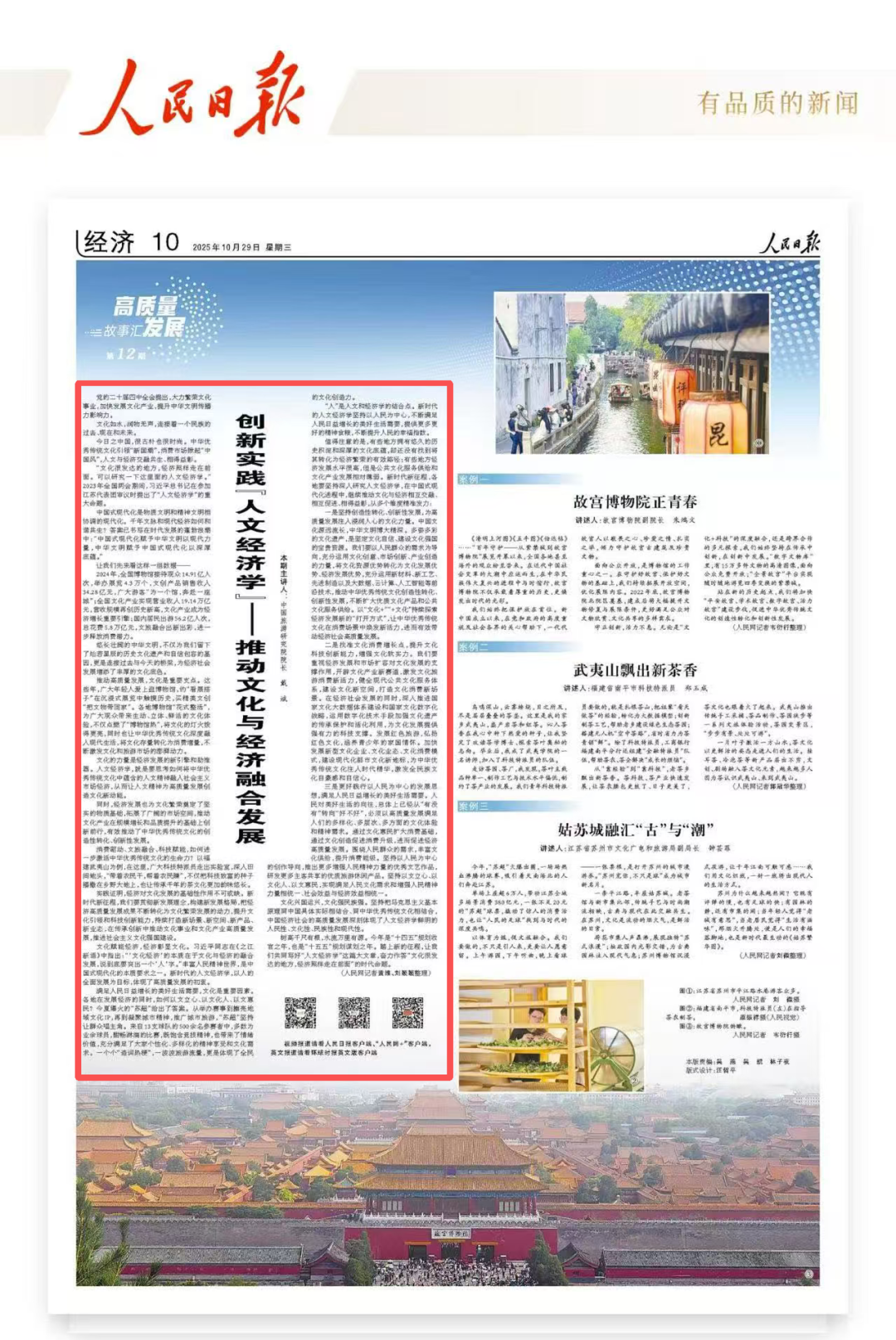 树高千尺有根,水流万里有源。今年是“十四五”规划收官之年,也是“十五五”规划谋划之年。踏上新的征程,让我们共同写好“人文经济学”这篇大文章,奋力作答“文化很发达的地方,经济照样走在前面”的时代命题。
