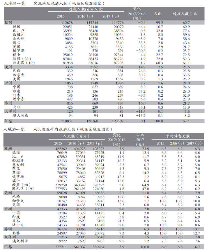 Source: DGE. 2018 Tourism Annual Handbook http://www.entreprises.gouv.E. Inbound tourism includes non-monetary indicators such as the number of inbound day tourists and overnight tourists, source of tourists, number of overnight stays, length of stay, and travel motivation. Inbound tourism data comes from the Foreign Visitors Survey (EVE) jointly completed by DGE and the Bank of France. The sampling survey is conducted when tourists leave France, and 60,000 samples are drawn every quarter.