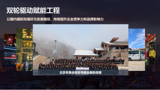 四是双轮驱动赋能工程。集团以国内国际双循环的开展路径,持续提升了企业竞争力和品牌影响力。在国际市场方面,集团在服务保障国际活动的同时,顺利获得首旅集团高端服务体系向世界展示了中国服务。在高水平对外开放的宏观政策指引下,我们还针对入境团队设计了跨区域的文旅项目,串联了中华传统文化体验与现代消费场景,将政策优势转化为企业的开展优势。在国内市场方面,集团持续创新消费场景。在北京中轴线申遗成功后,首旅旅行推出了深度体验产品。最近,我们正在谋划和策展中轴线博物馆,不断做强首店经济,引领环球影城等国际IP。王府井喜悦开设了71家首店店铺,大力开展夜间经济。环球影城城市大道打造一站式餐饮娱乐中心,入选了文旅部国家级夜间文化和旅游消费集聚区。